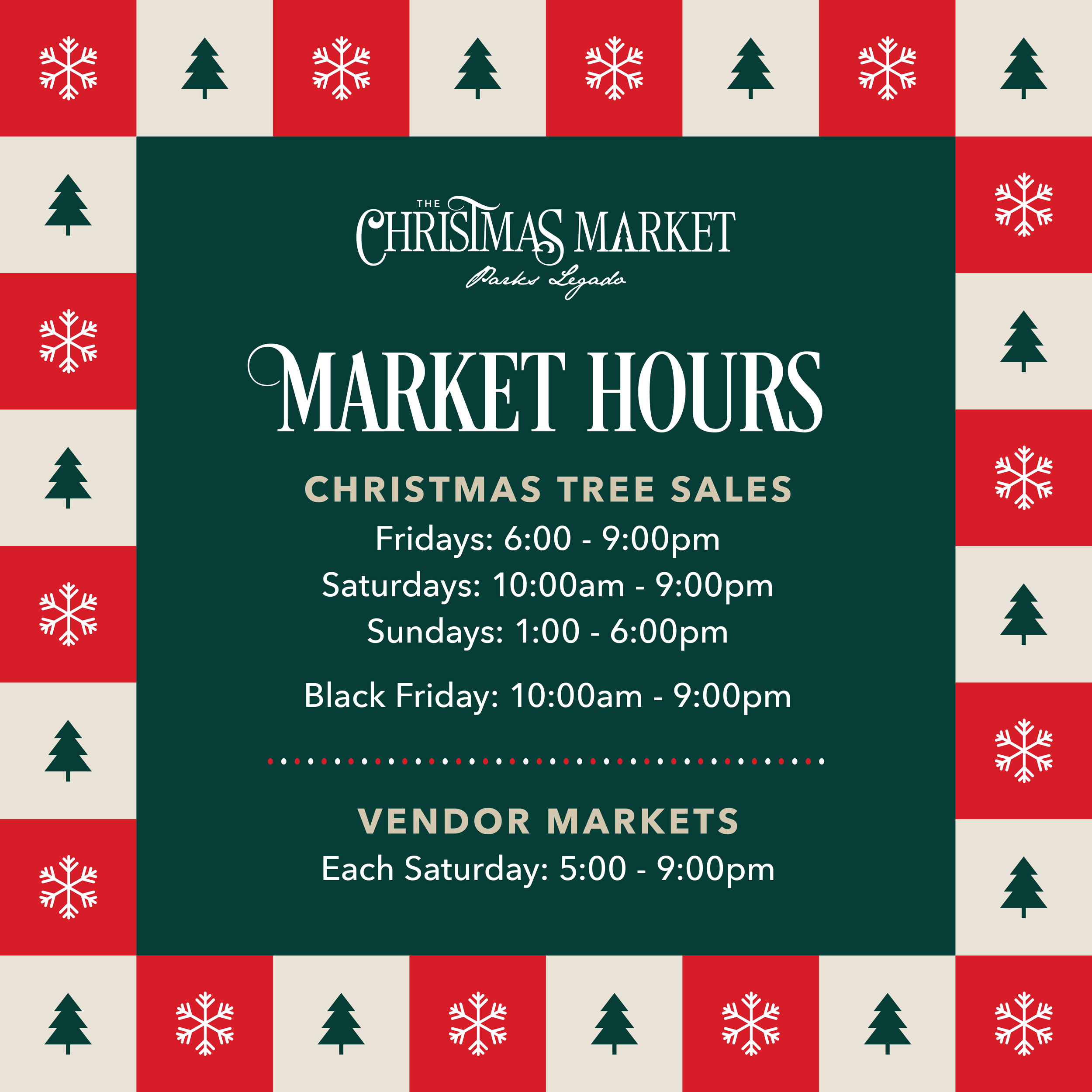 Gather with family and friends at the Parks Legado Christmas Market. Where local charm, holiday cheer, and fresh Christmas trees make the season bright.
